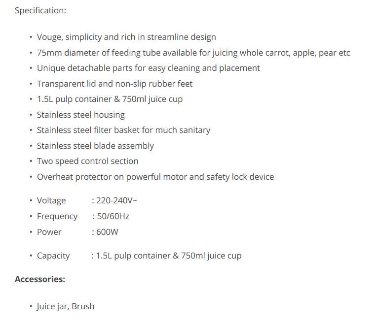 You're reviewing:PENSONIC JUICE EXTRACTOR PJ-6900S