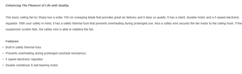You're reviewing:SHARP CELING FAN 56" # PJ-C56CF