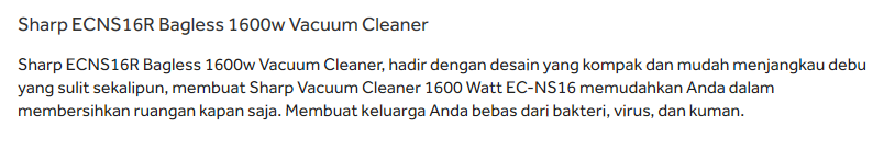 You're reviewing:SHARP VACUUM CLEANER # EC-NS16R