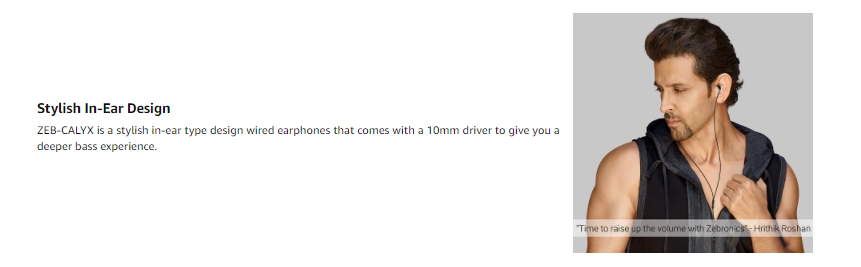 Stylish design: Listen to music in style with Zeb-Calyx wired earphone that sports a glossy design.